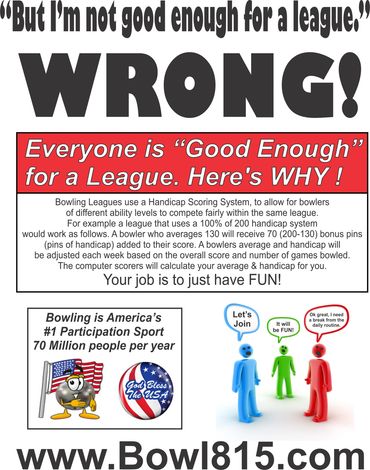 Bowlers! - Handicap Scoring system used to be fair for all. Everyone will not get a TROPHY however you will have FUN!
